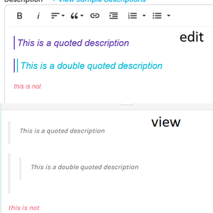 When I add quotes to text, it shows that the text is bigger and purple. But when viewing the project's description outside of editing, it is different.